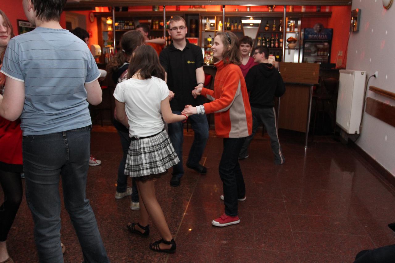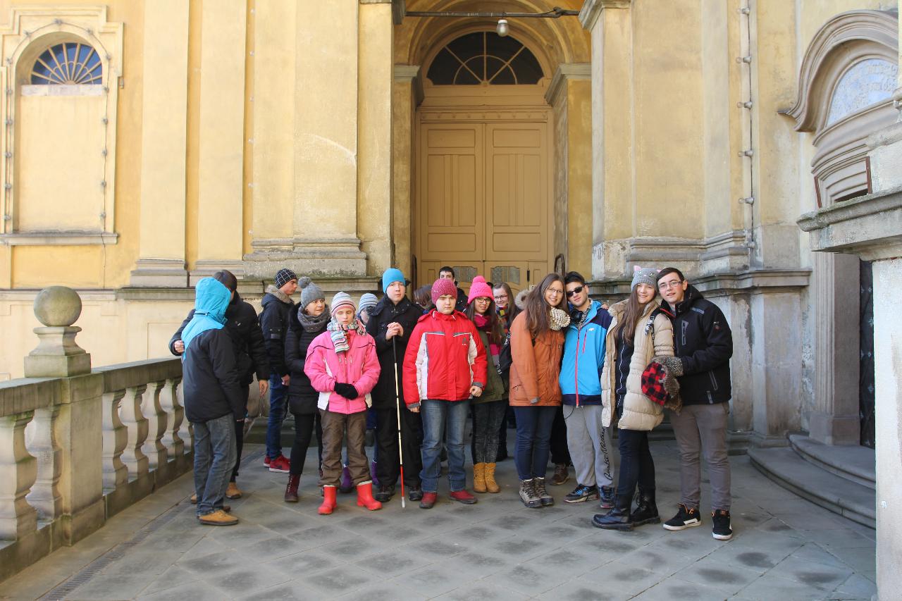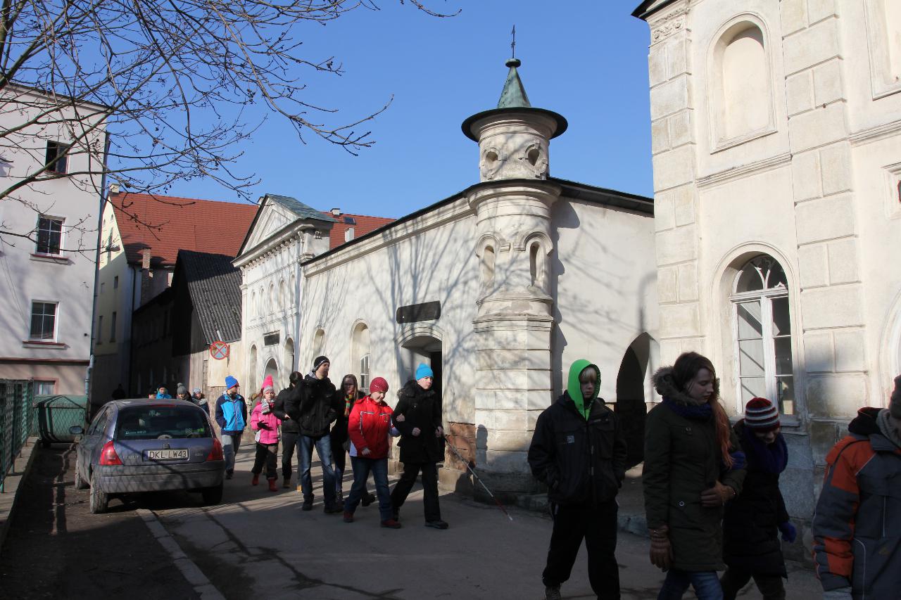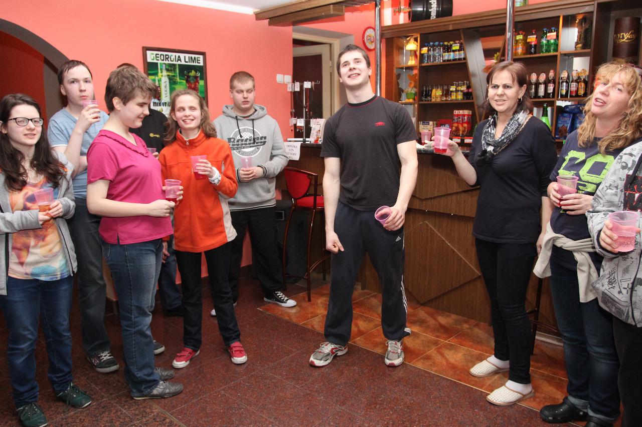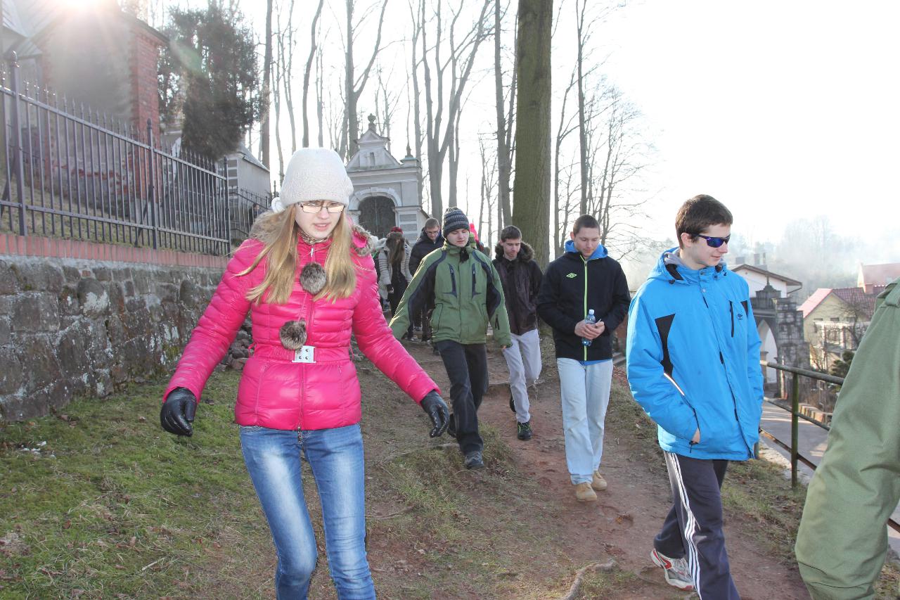Punktualnie o dziewiątej jedziemy autokarem do Wambierzyc. Przewodnikiem jest Pan Stanisław, a za kierownicą autokaru siedzi Pan Józef. W Wambierzycach zwiedzamy Sanktuarium Maryjne. Świątynia z zewnątrz i wewnątrz robi na wszystkich ogromne wrażenie. Pan Stanisław barwnie przybliża jej historię. Po pamiątkowym grupowym zdjęciu na schodach przed kościołem ruszamy poznać cześć dróżek kalwarii wambierzyckiej. Następnie ruszamy zobaczyć ruchomą szopkę bożonarodzeniową wykonaną przez Longina Wittiga i jego syna Hermanna. Szopkę i pozostałe ruchome ekspozycję poznajemy dzięki audiodeskrypcji kadry. Dalej podążamy „drogą 100 zakrętów” i docieramy do miejscowości Czermna koło Kudowy. Tu czeka nas niesamowite przeżycie podczas zwiedzaniu Kaplicy Czaszek. Po poznaniu tego szczególnego miejsca wędrujemy pieszo do Kudowy Zdroju. Degustujemy tam wodę mineralną, zwiedzamy park zdrojowy i poznajemy historię uzdrowiska. Jest też chwila czasu na zjedzenie posiłku. Następnie wyruszamy autokarem do Dusznik Zdroju. Ta uzdrowiskowa miejscowość zaskakuje nas leżącym jeszcze śniegiem i swoim urokiem. W trakcie zwiedzania Dusznik Zdroju docieramy do Dworku Fryderyka Chopina gdzie na tle muzyki kompozytora przedstawiona jest historia jego pobytu w kurorcie w sierpniu 1826 roku. Ostatnim punktem wycieczki jest Polanica Zdrój. Poznajemy jej historię i najważniejsze obiekty zdrojowe, a następnie ustawiamy się w długiej kolejce by zdegustować słynne polanickie gofry. Zadowoleni i zmęczeni wracamy do Lądka Zdroju śpiewając piosenki i zadając sobie zagadki. Punktualnie o dwudziestej spotykamy się w kawiarni na osiemnastce Krzyśka. Jest tort z osiemnastoma świeczkami, szampan Piccolo, gromkie 100-lat, podrzucanie osiemnaście razy i życzenia. Po degustacji słodkości Krzysiek porywa na parkiet Kingę i rozpoczynamy dyskotekę. Impreza dobrze się rozkręca przy muzyce, którą jako DJ serwuje Mateusz. Wszyscy świetnie się bawią, a kadra zastanawia się skąd młodzież ma jeszcze na to siły.