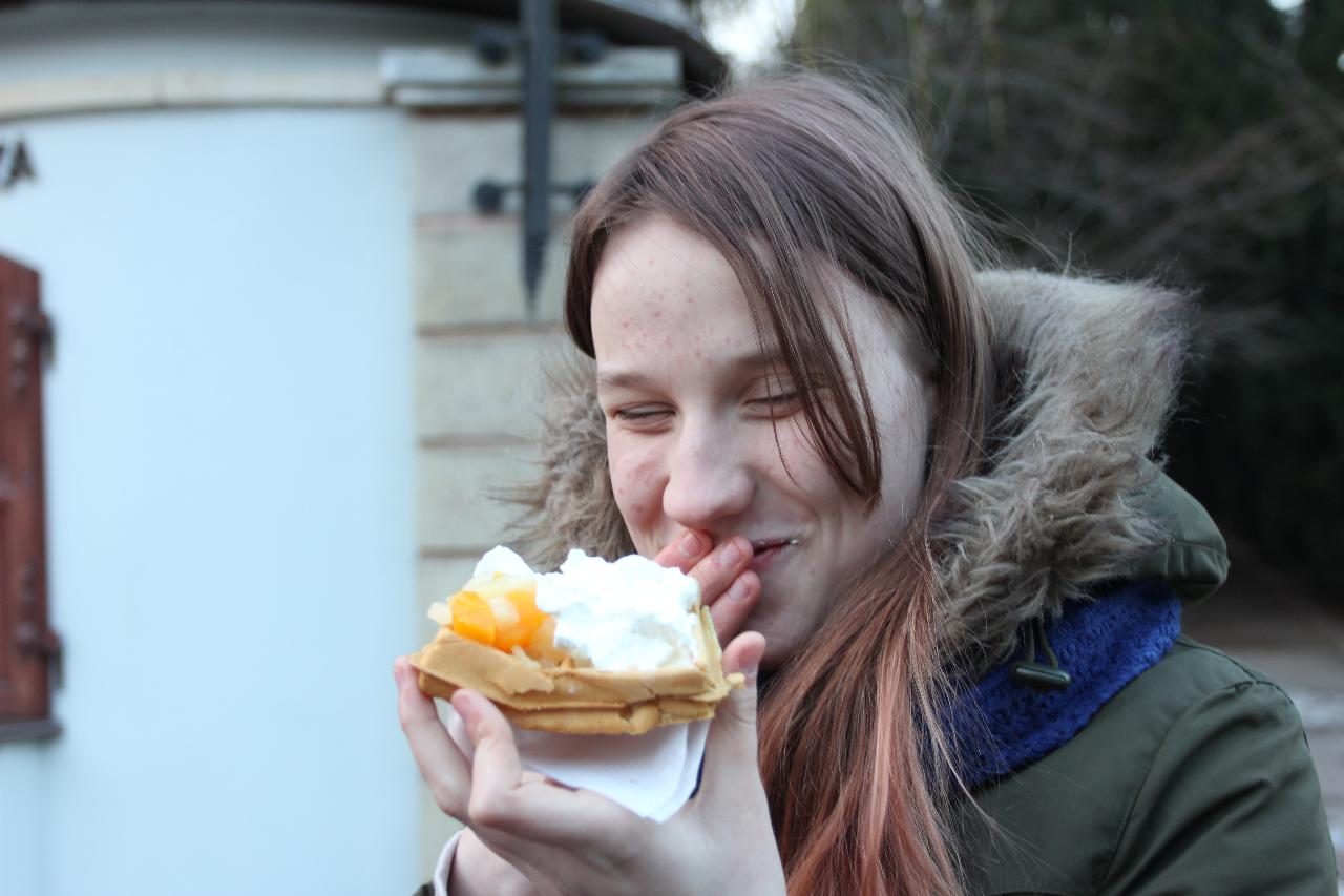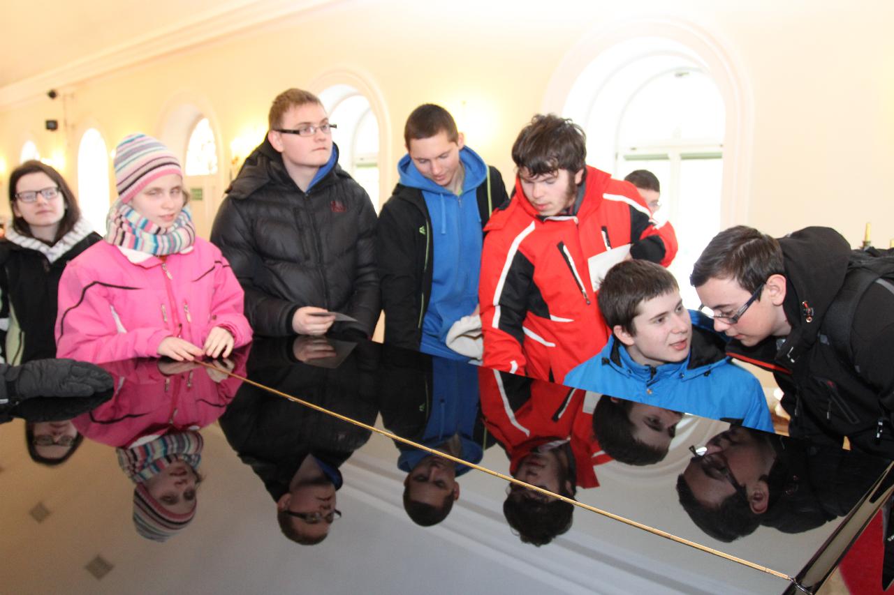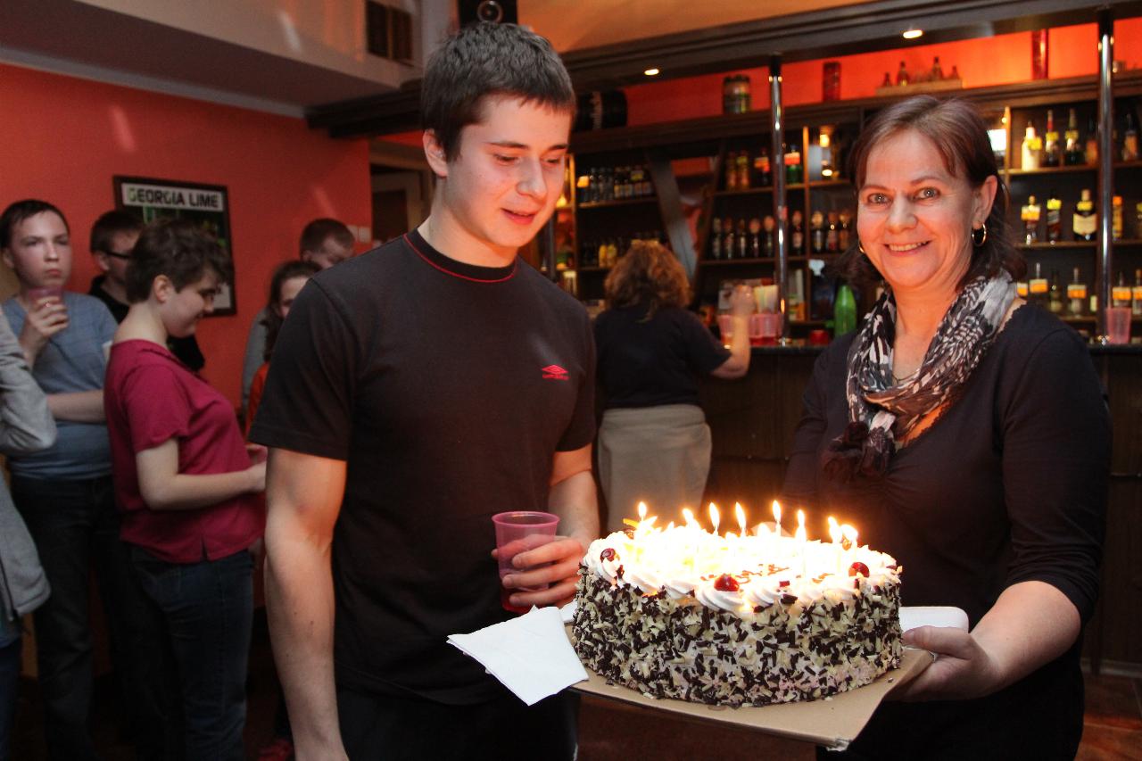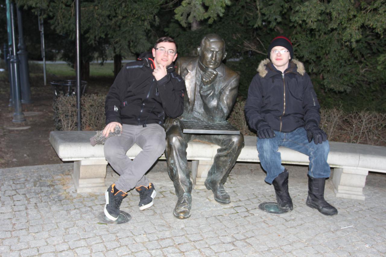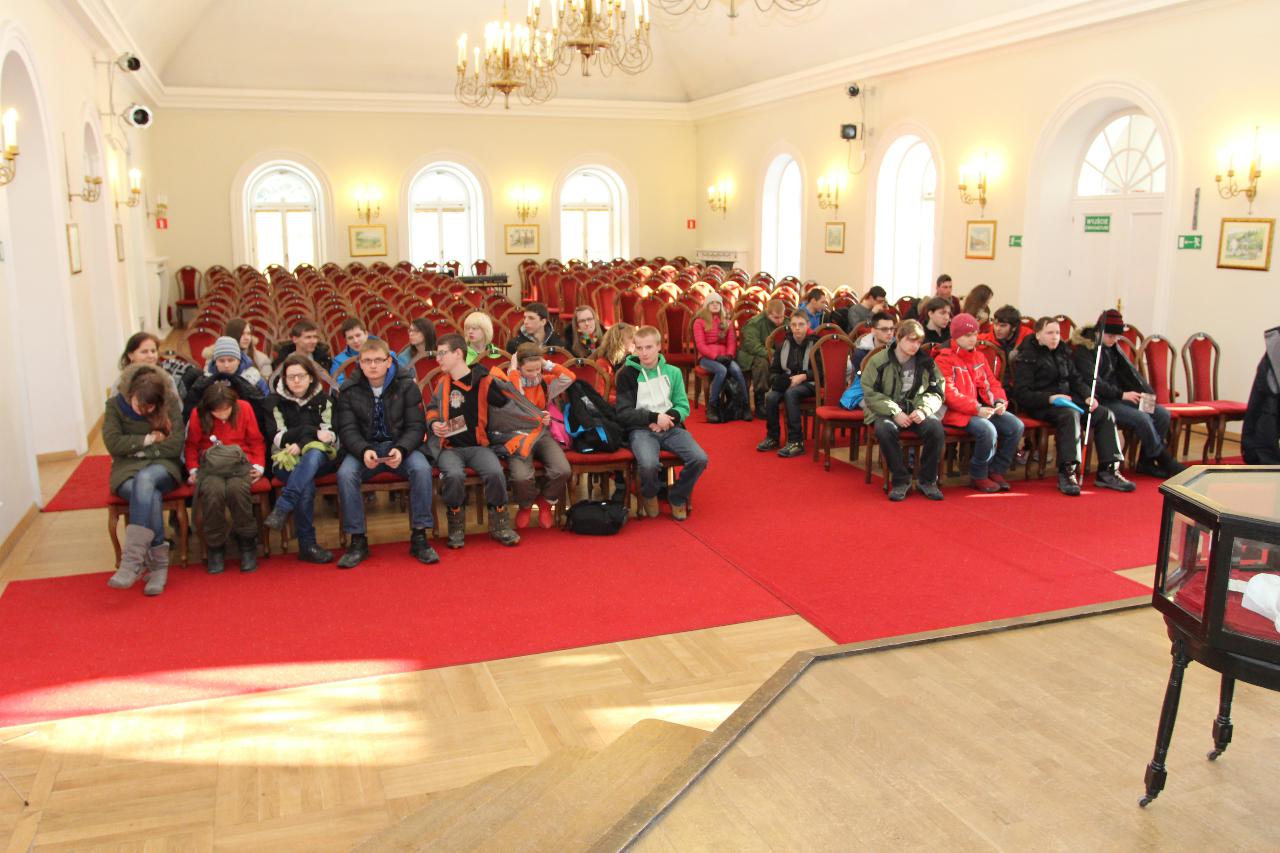 Punktualnie o dziewiątej jedziemy autokarem do Wambierzyc. Przewodnikiem jest Pan Stanisław, a za kierownicą autokaru siedzi Pan Józef. W Wambierzycach zwiedzamy Sanktuarium Maryjne. Świątynia z zewnątrz i wewnątrz robi na wszystkich ogromne wrażenie. Pan Stanisław barwnie przybliża jej historię. Po pamiątkowym grupowym zdjęciu na schodach przed kościołem ruszamy poznać cześć dróżek kalwarii wambierzyckiej. Następnie ruszamy zobaczyć ruchomą szopkę bożonarodzeniową wykonaną przez Longina Wittiga i jego syna Hermanna. Szopkę i pozostałe ruchome ekspozycję poznajemy dzięki audiodeskrypcji kadry. Dalej podążamy „drogą 100 zakrętów” i docieramy do miejscowości Czermna koło Kudowy. Tu czeka nas niesamowite przeżycie podczas zwiedzaniu Kaplicy Czaszek. Po poznaniu tego szczególnego miejsca wędrujemy pieszo do Kudowy Zdroju. Degustujemy tam wodę mineralną, zwiedzamy park zdrojowy i poznajemy historię uzdrowiska. Jest też chwila czasu na zjedzenie posiłku. Następnie wyruszamy autokarem do Dusznik Zdroju. Ta uzdrowiskowa miejscowość zaskakuje nas leżącym jeszcze śniegiem i swoim urokiem. W trakcie zwiedzania Dusznik Zdroju docieramy do Dworku Fryderyka Chopina gdzie na tle muzyki kompozytora przedstawiona jest historia jego pobytu w kurorcie w sierpniu 1826 roku. Ostatnim punktem wycieczki jest Polanica Zdrój. Poznajemy jej historię i najważniejsze obiekty zdrojowe, a następnie ustawiamy się w długiej kolejce by zdegustować słynne polanickie gofry. Zadowoleni i zmęczeni wracamy do Lądka Zdroju śpiewając piosenki i zadając sobie zagadki. Punktualnie o dwudziestej spotykamy się w kawiarni na osiemnastce Krzyśka. Jest tort z osiemnastoma świeczkami, szampan Piccolo, gromkie 100-lat, podrzucanie osiemnaście razy i życzenia. Po degustacji słodkości Krzysiek porywa na parkiet Kingę i rozpoczynamy dyskotekę. Impreza dobrze się rozkręca przy muzyce, którą jako DJ serwuje Mateusz. Wszyscy świetnie się bawią, a kadra zastanawia się skąd młodzież ma jeszcze na to siły.