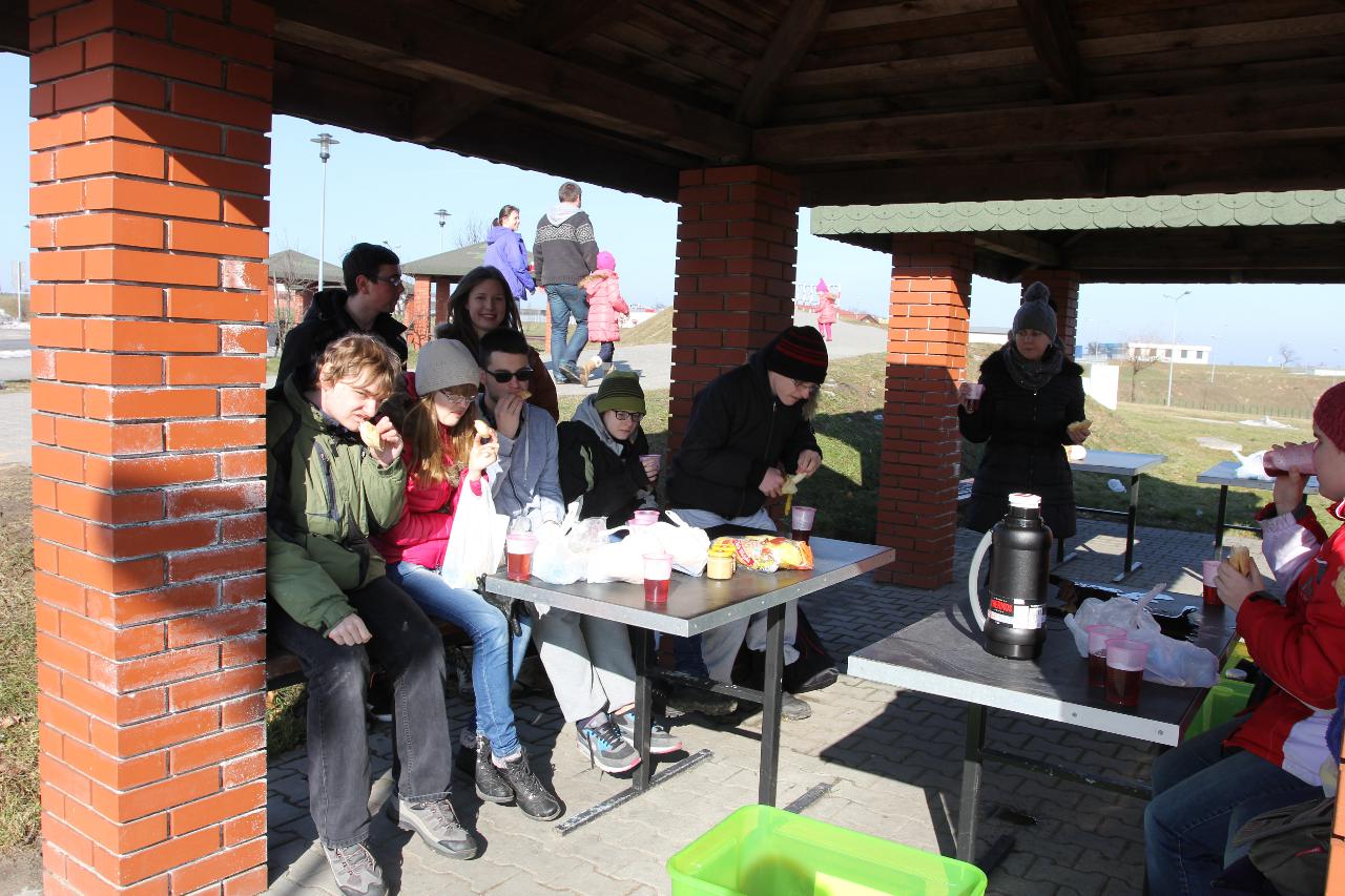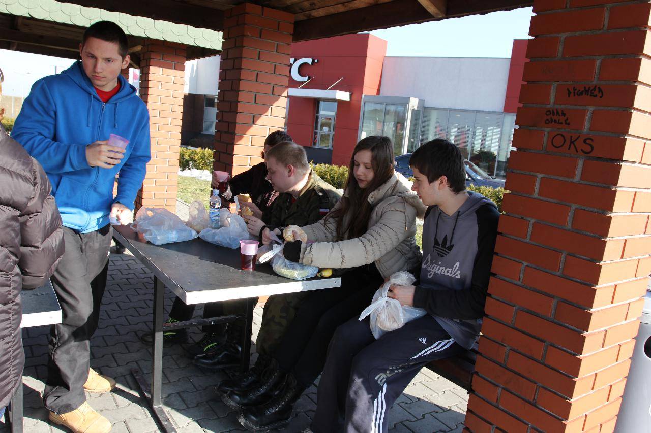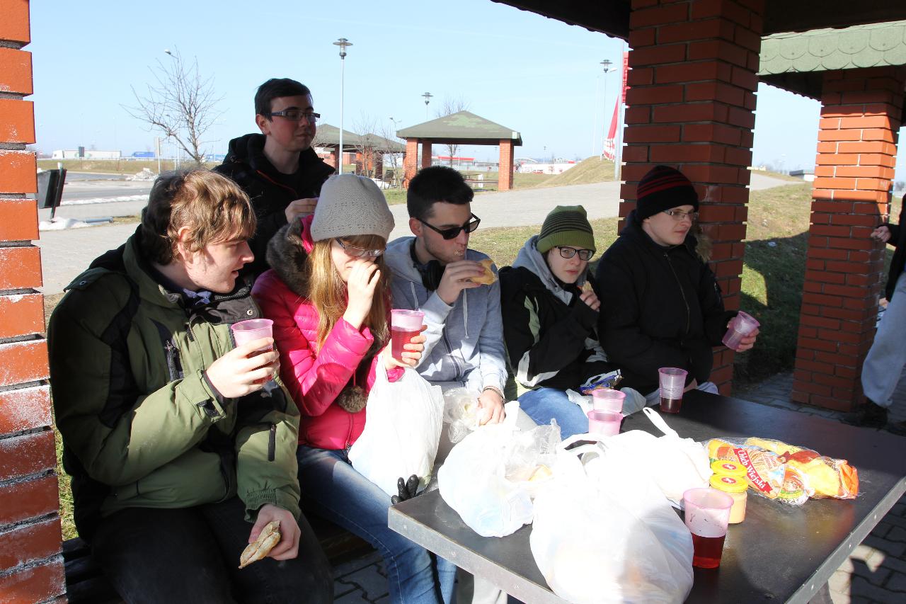 Po śniadaniu zaczynamy dopakowywać bagaże i robić porządki w pokojach. Ciekawe kto i co zapomni? O dziewiątej jest już nasz autokar. Dwóch panów kierowców wita nas z uśmiechem. Przyjechali po nas Pan Zbyszek i Pan Albert. Rozpoczyna się najtrudniejsza logistycznie operacja związana z powrotem. Musimy zapakować do autobusu bagaże. Wszyscy biorą się żwawo do pracy i przenoszą do luków wszystkie nasze pakunki. Niektórzy robią po kilka kursów. Skąd my mamy tyle sprzętu? Uf, udało się i autokar jest zapakowany. Jeszcze tylko ostatnie spojrzenie na Lądek Zdrój, nasz gościnny ośrodek Złoty Łan i ruszamy w drogę powrotną. Za kierownicą Pan Albert, który kieruje autokar na Kłodzko, a następnie na Nysę by dotrzeć do autostrady. Po drodze zbaczamy z kursu i przejeżdżamy przez malownicze miasteczko Paczków, które zachowało jeszcze część murów obronnych i strzeliste baszty. Pogoda jest wyborna, intensywnie świeci słońce i jest około 10 stopni ciepła. W połowie drogi zatrzymujemy się na posiłek i rozprostowanie kości. W powietrzu czuć zbliżającą się wiosnę. Gorąca herbata i smaczne kanapki dodają nam sił. Punktualnie o piętnastej wjeżdżamy na parking naszego Ośrodka w Krakowie. Witają nas radosne twarze rodziców. Już tylko trzeba wysiąść z autobusu, zabrać bagaż i to koniec zimowiska. Wszystko dobre co się dobrze kończy.
